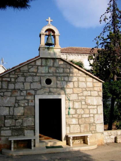 Leaving the kids at the beach I took a walk through the center of the village of Loviste. Passing cafes and small shops I happened upon the tiny village church. It was only a week ago that we visited the huge Cathedral and Jesuit Church of Dubrovnik. This local church would fit into a tiny corner of the Jesuit Church, but I found that it had a special elegance of its own.